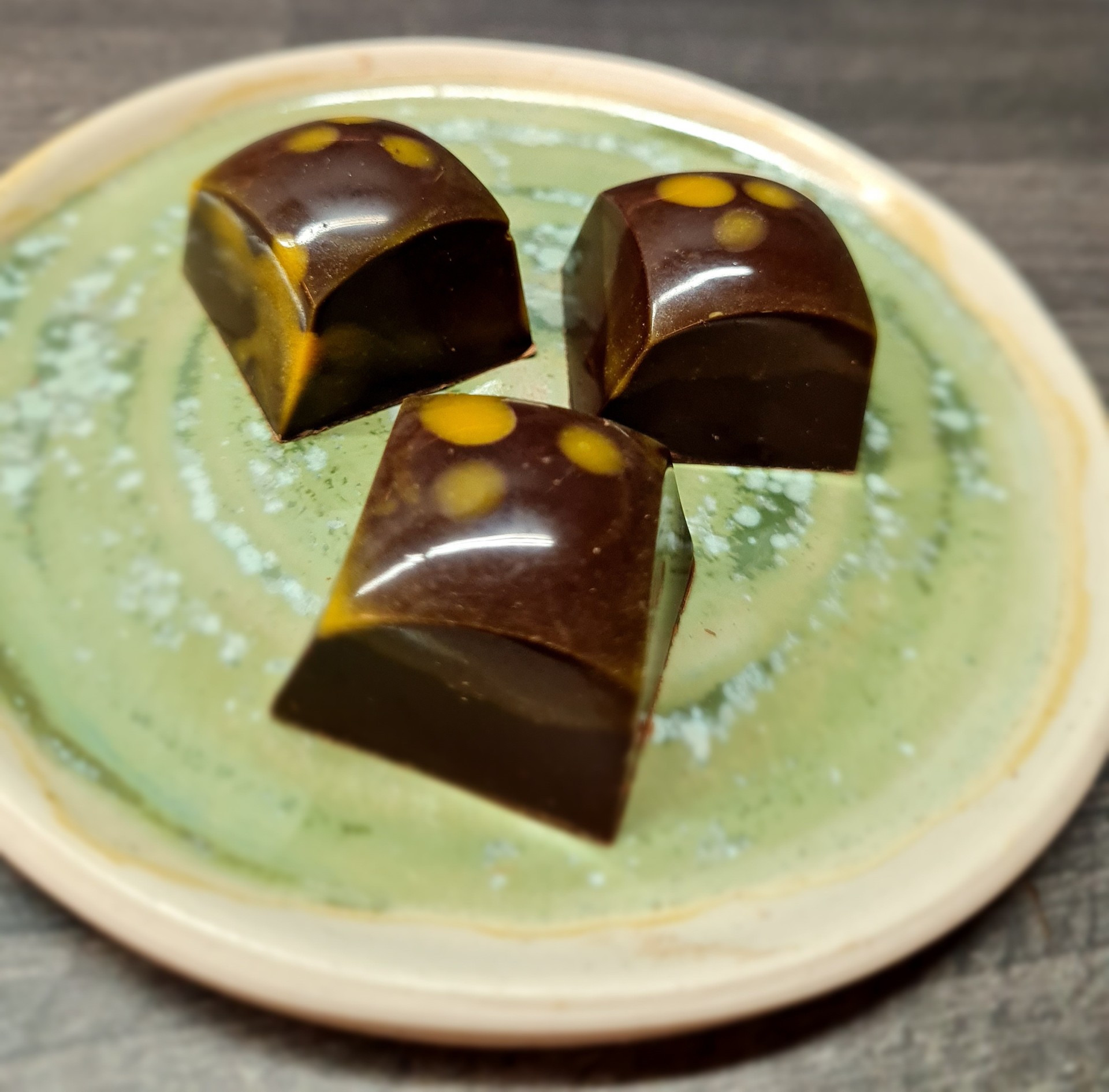 Jag gör mina praliner av den finaste och godaste chokladen från tex Felchlin, Original Beans och Carma. Till fyllningarna använder jag gärna frukter och bär som finns omkring mig i Sörmland plus svensk grädde, smör och socker. Förvara pralinerna svalt och torrt, 16-18 grader så kan de hålla i 4 veckor efter inköp. Pralinerna är en färskvara och godast att äta den närmsta tiden efter tillverkningen.