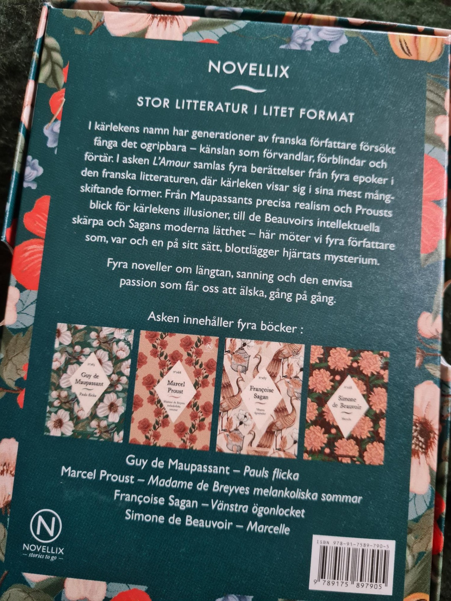 Fyra moveller från Novellix med kärlekstema. Passion, längtan och kärlekens illusioner. Finns den nån som kan skriva om kärlek så är det fransmännen. Våga ta fram ditt romantiska jag och läs den här härliga novellasken.